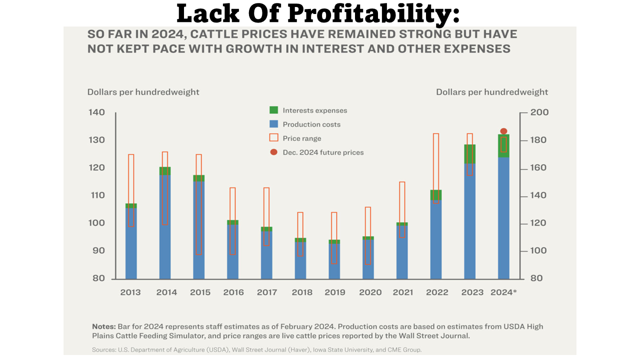 Beef prices are at an all-time high, but costs and interest rates are even higher. As the chart above shows, there is no profit to be had. In addition, over the past five years, America has lost nearly 107,000 beef cattle farms and ranches. Cattle inventory is at its lowest point in 70 years!